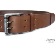 Ceinturon fabriqué dans un cuir au tannage végétal de premier choix. La boucle, d’inspiration military, accompagne idéalement un jean. Deux passants permettent d’avoir un ajustage parfait de la ceinture. Fabriquée en Bretagne dans notre atelier. Pour son entretien, pensez au Lait nourrissant (rubrique entretien). Cousue à la main au point sellier : solidité et longévité.