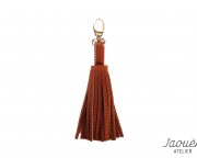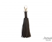 Élégant porte-clés pompon en cuir de taurillon pleine fleur. Idéal pour retrouver ses clés rapidement et pratique avec son attache mousqueton, il permet d’y attacher ses clés facilement.