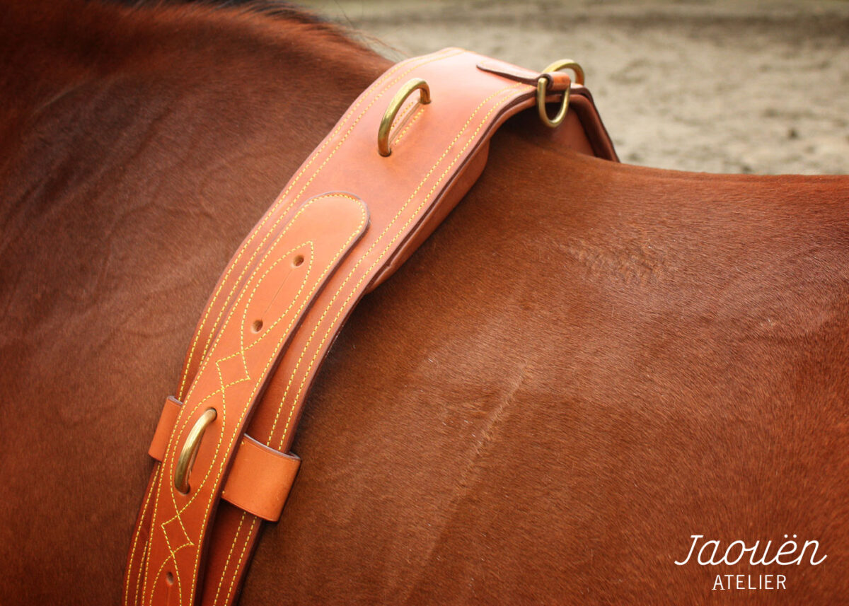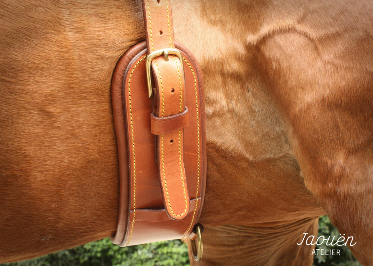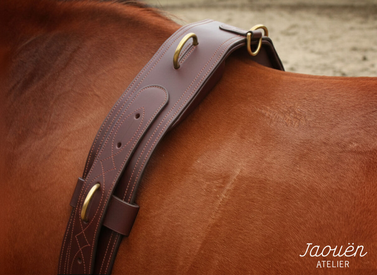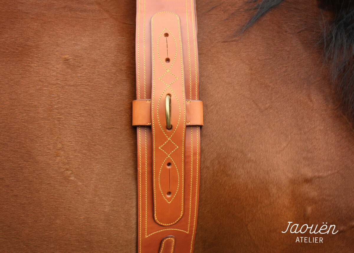 Réalisé dans mon atelier avec des cuirs français de premier choix, ce surfaix est une pièce de sellerie robuste et raffinée.