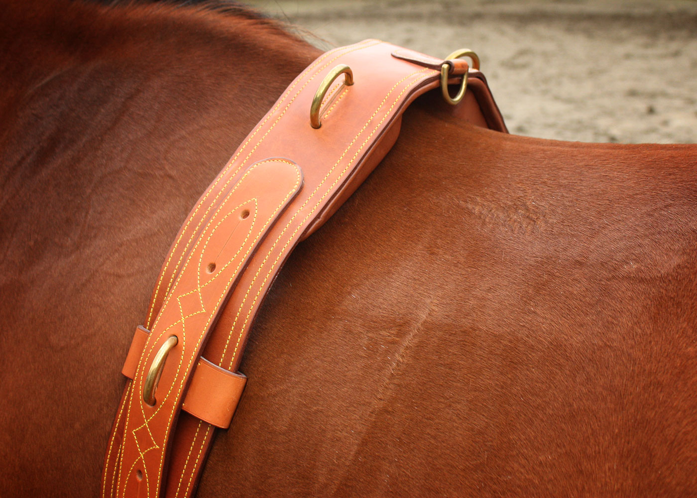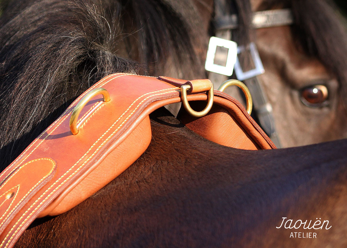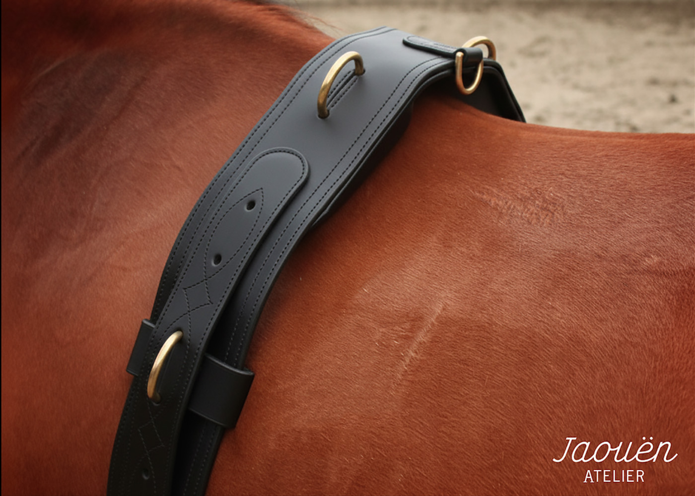 Réalisé dans mon atelier avec des cuirs français de premier choix, ce surfaix est une pièce de sellerie robuste et raffinée.